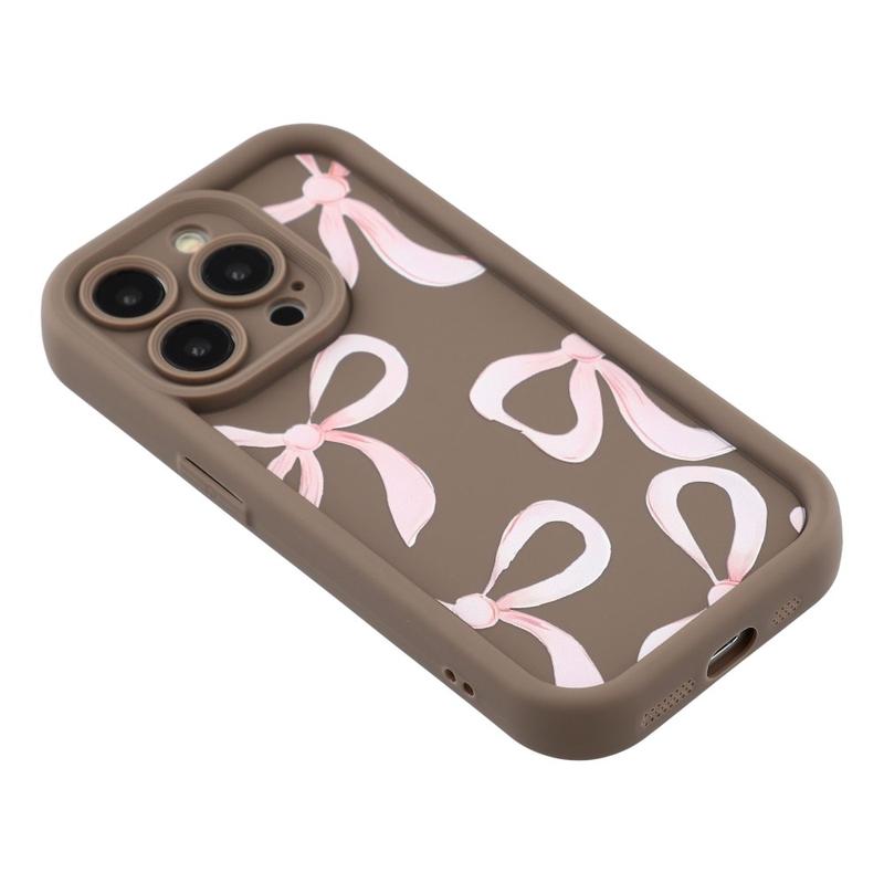 iPhone 14 Pro Max Stijlvol Schokbestendig TPU Hoesje met Opstaande Randen - Bruin / Grote strik