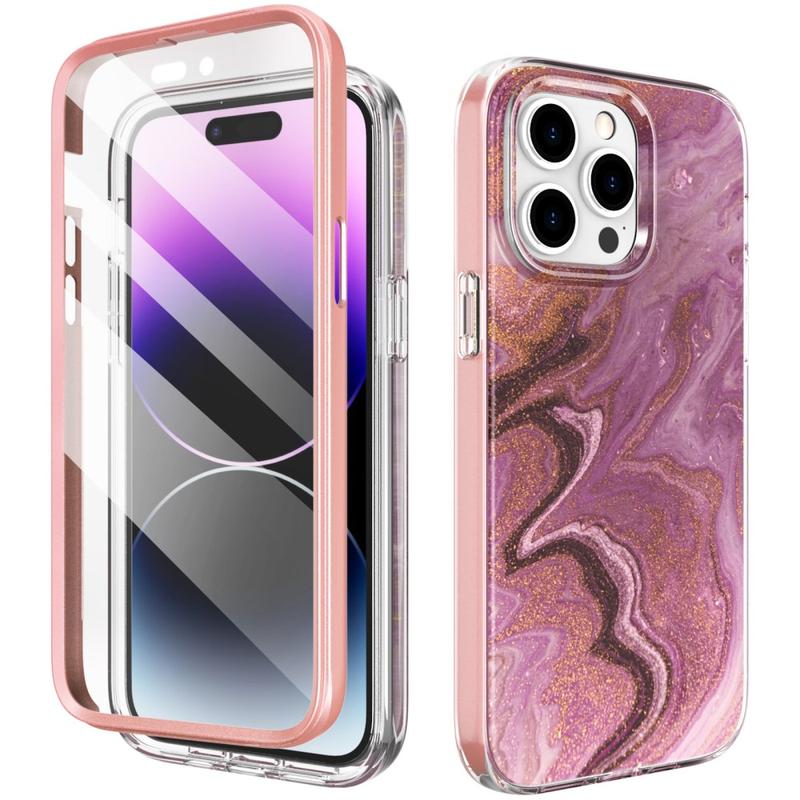 iPhone 14 Pro Ahastyle WE13 Hybride hoesje met 360 bescherming - Paars Marmer
