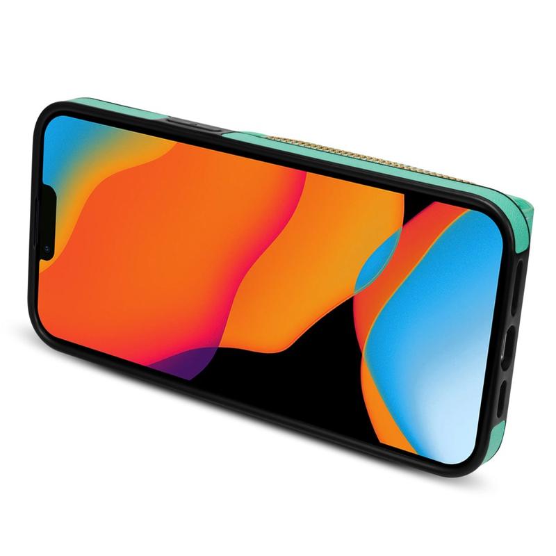iPhone 15 alles-in-één hoesje met portemonnee en riem - Mint