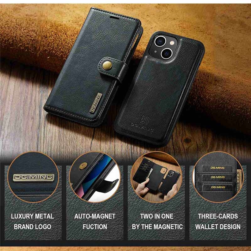 - DG.Ming portemonnee leren hoesje met een afneembare iPhone 15 hoes