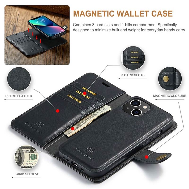 DG.Ming 2-in-1 afneembare lederen portemonnee-hoes voor iPhone 15