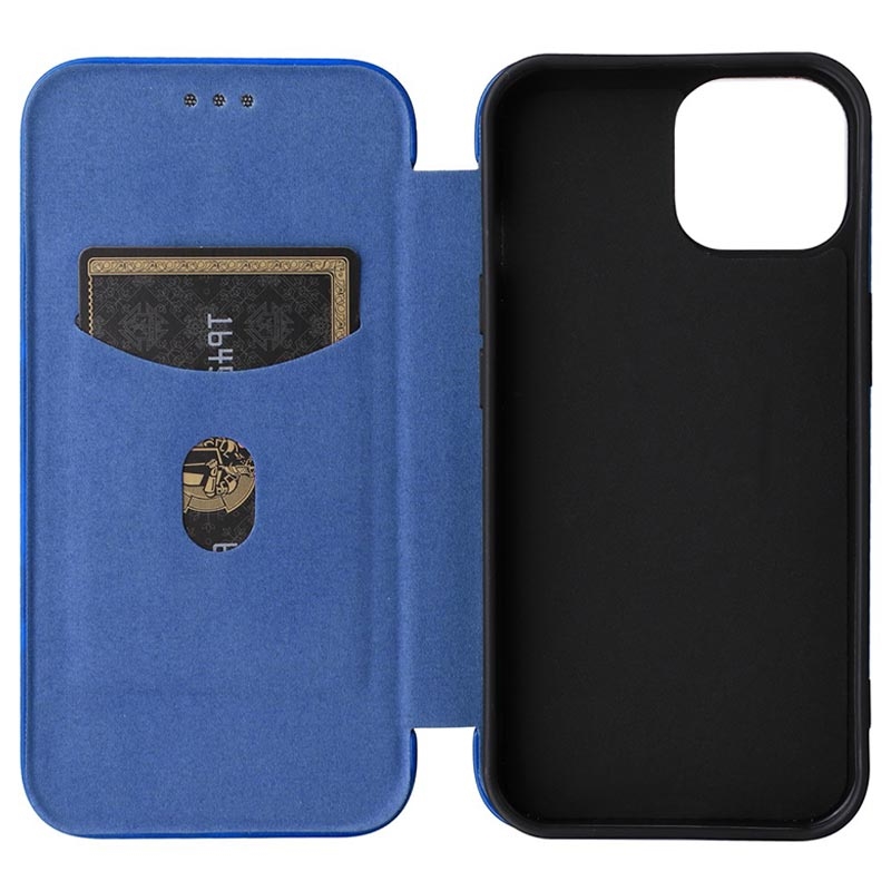 - Koolstofvezel getextureerde flip hoes voor iPhone 15