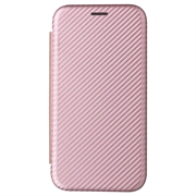 - Koolstofvezel getextureerde flip hoes voor iPhone 15