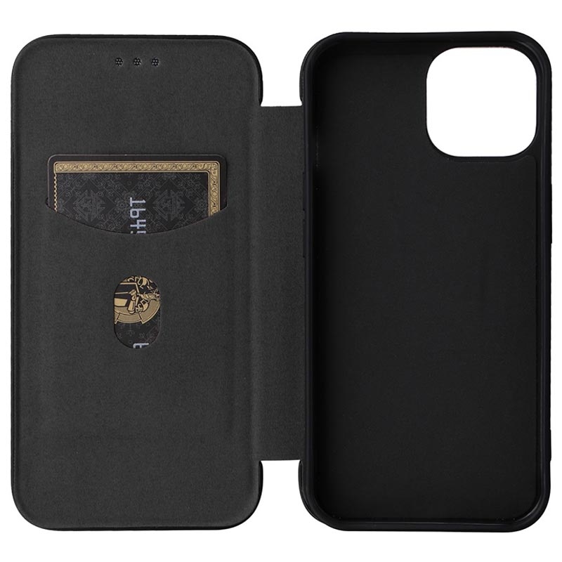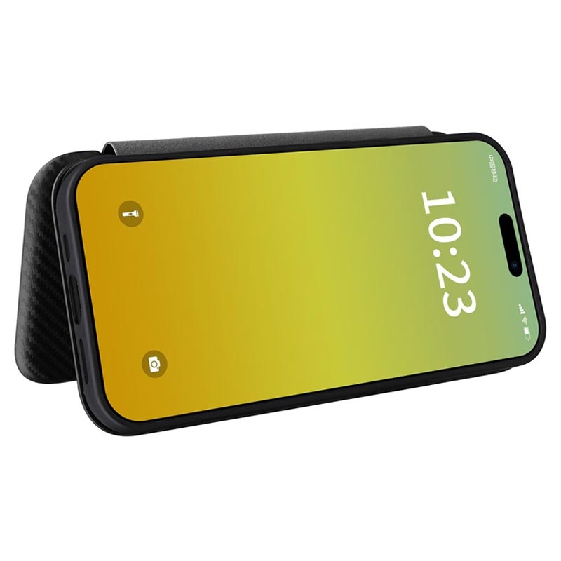 - Koolstofvezel getextureerde flip hoes voor iPhone 15