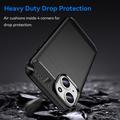 De geborstelde TPU-hoes beschermt je iPhone 15 voldoende en geeft hem een geweldige stijl, dankzij het koolstofvezelpatroon op de achterkant. De case zorgt ook voor oververhitting bij gebruik van je iPhone 15, met zijn ontwerp voor warmteafvoer.