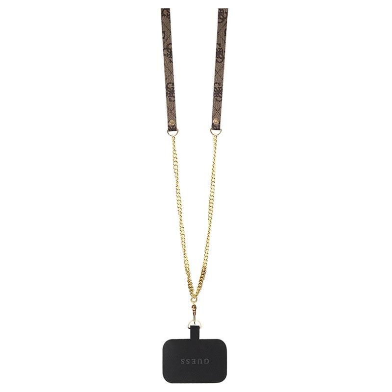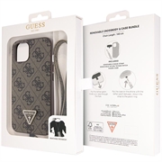 iPhone 15 Guess 4G Strass Triangle Metal Logo Case with Crossbody Strap - Brown