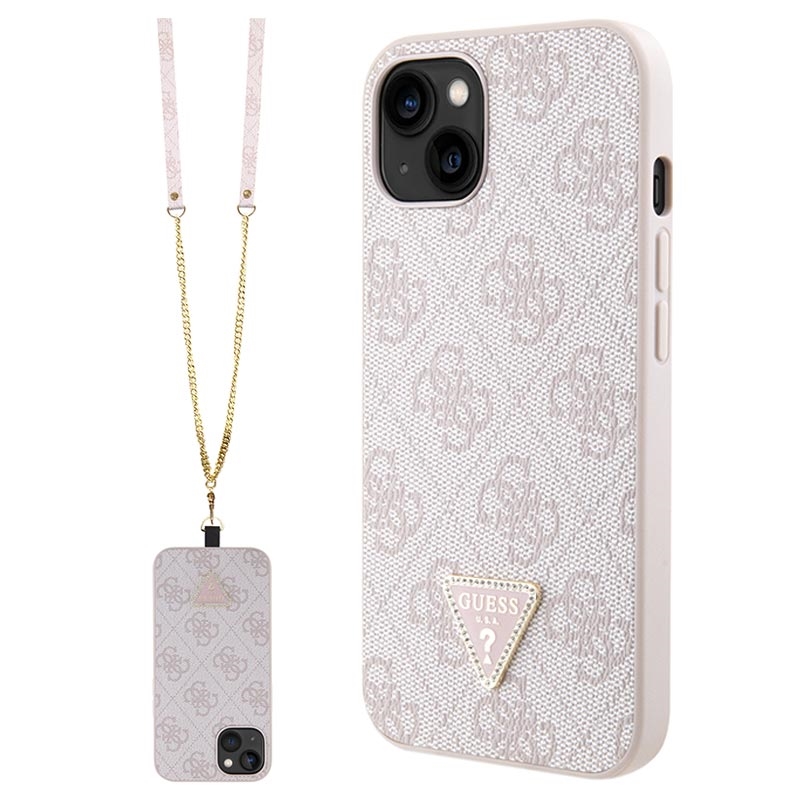 Guess 4G Strass Triangle Metal Logo Case with Crossbody Strap for iPhone 15