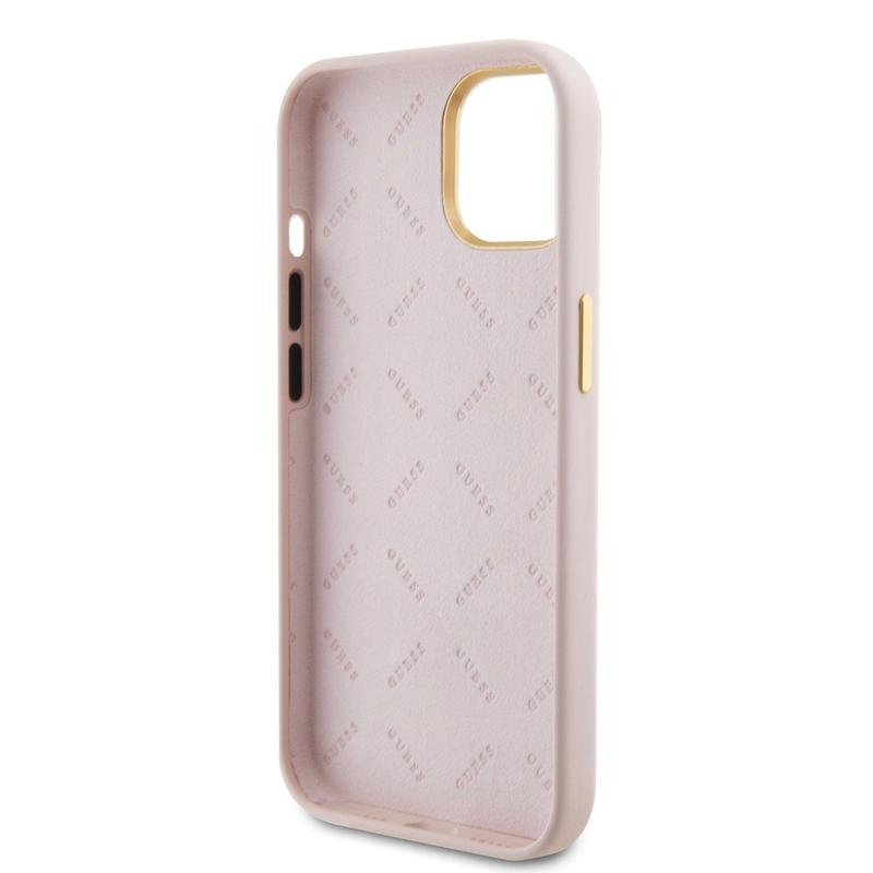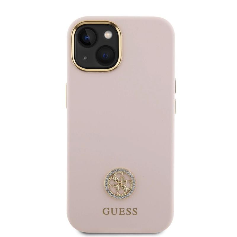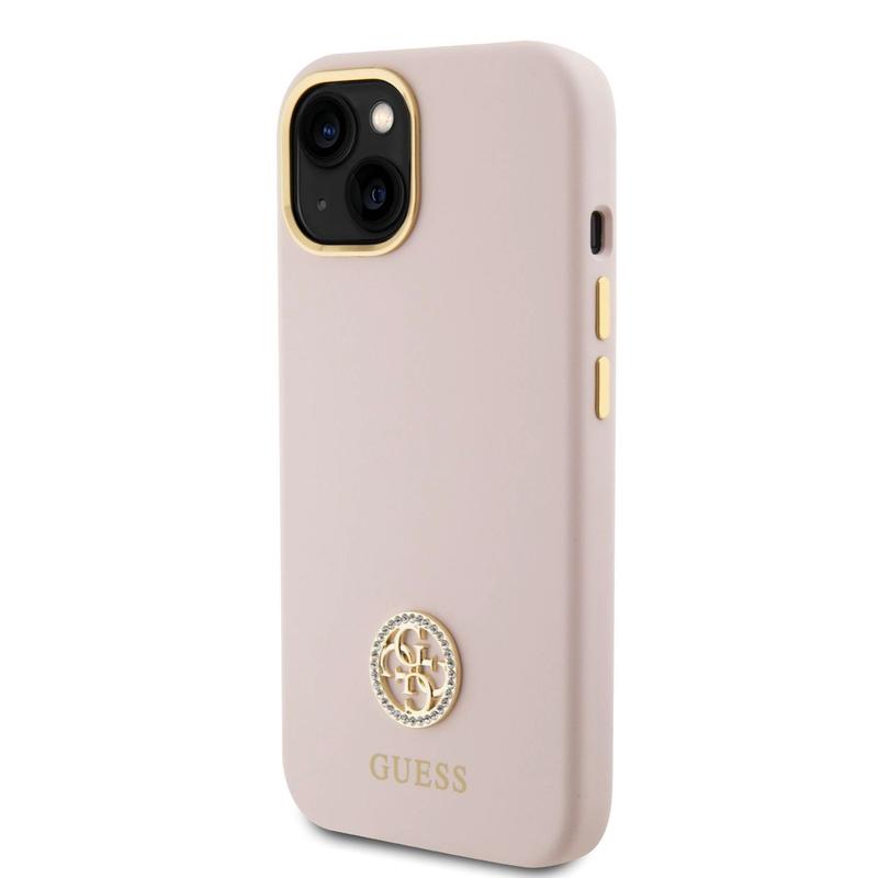 Guess 4G Strass Metal Logo Liquid Silicone Hoesje voor iPhone 15