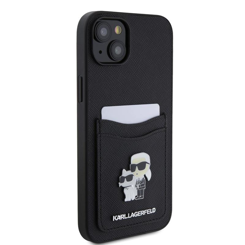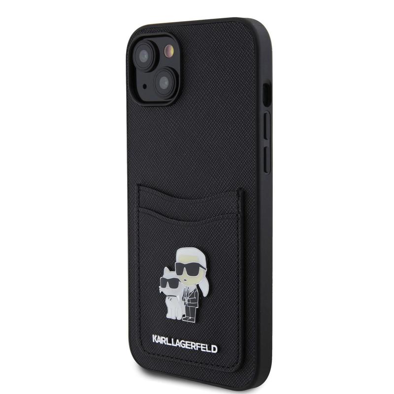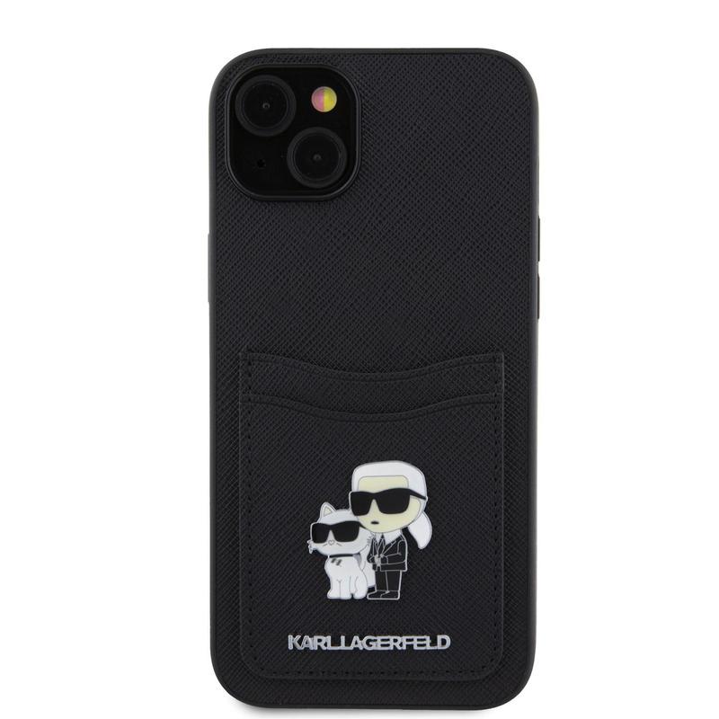 Karl Lagerfeld Saffiano metalen Karl & Choupette hoesje met kaartsleuf voor iPhone 15