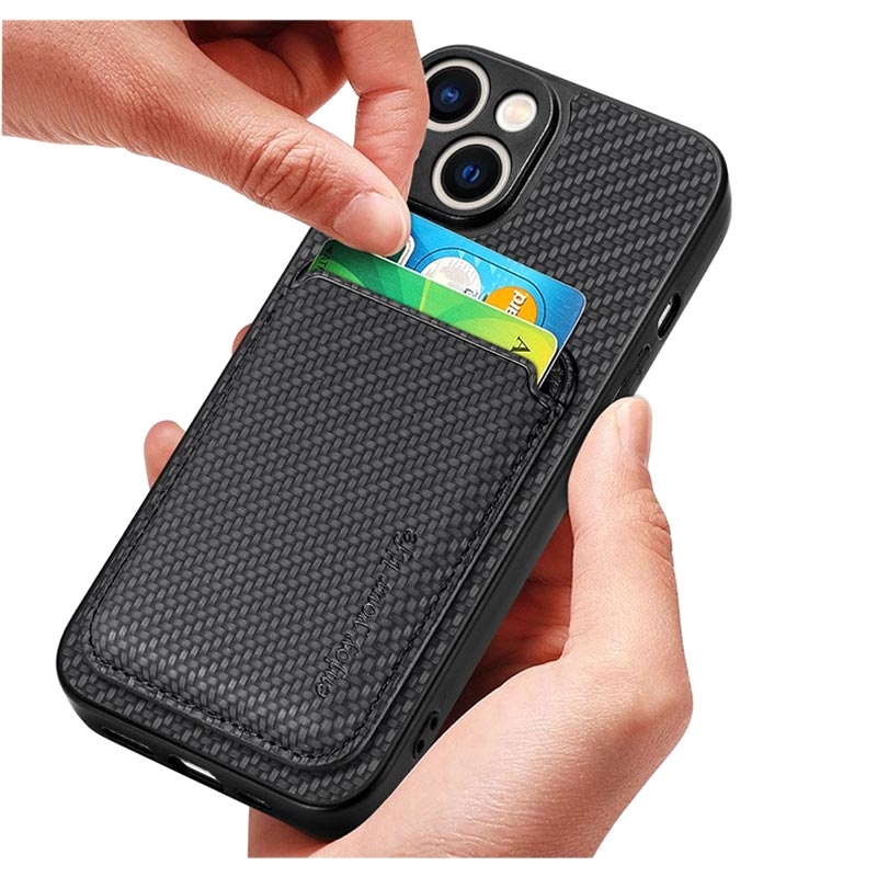 Magnetic Case with Card Holder for iPhone 15 Plus - Carbon Fiber