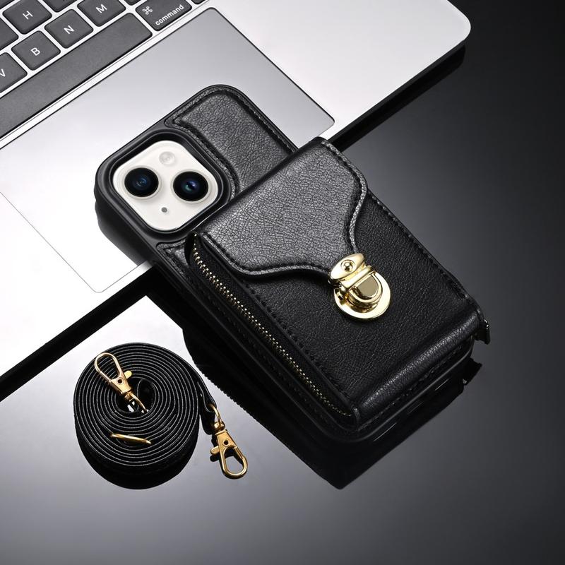 Alles-in-één beschermhoes van TPU met portefeuille en riem voor iPhone 15 Plus