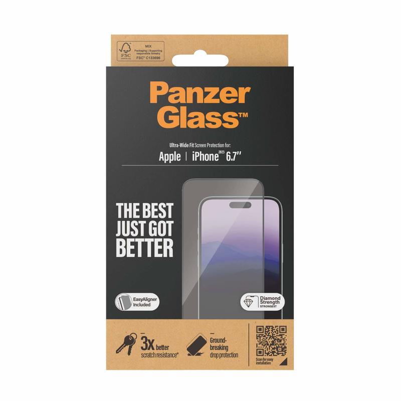 - Ultra-Wide Fit gehard glazen schermbeschermer voor iPhone 15 Plus van PanzerGlass