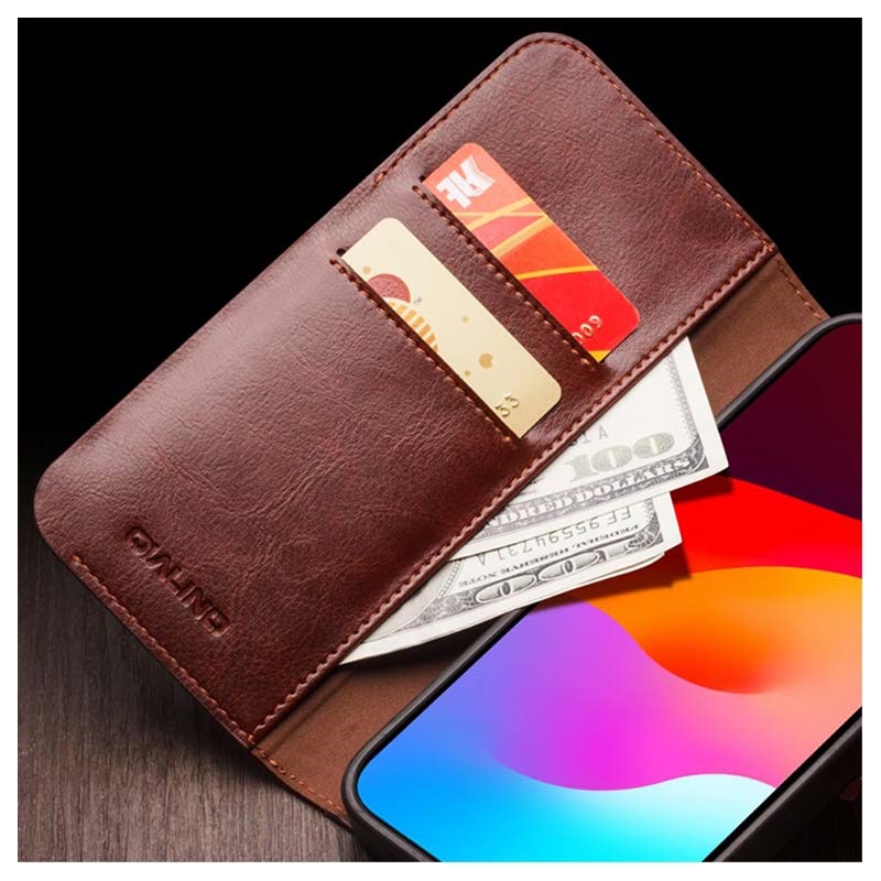 De Qialino Classic Wallet Leather Case voor iPhone 15 Plus is gemaakt van rundleer van topkwaliteit en geeft uw apparaat een stijlvolle en elegante uitstraling, terwijl het wordt beschermd tegen ongewenste dagelijkse schade. De portemonnee-etui heeft binnenvakken voor het opbergen van je geld en pasjes.