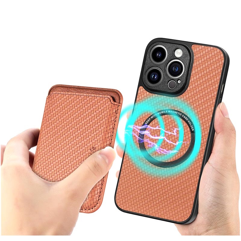 Magnetic Case with Card Holder for iPhone 15 Pro - Carbon Fiber