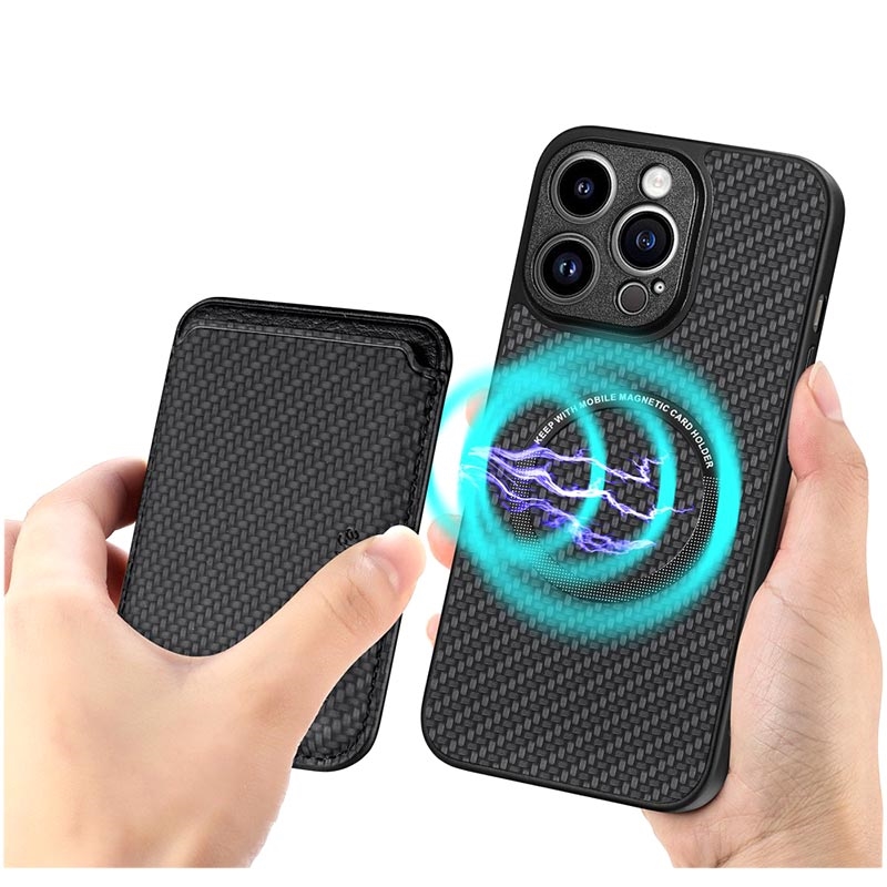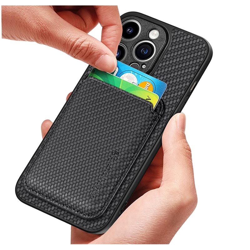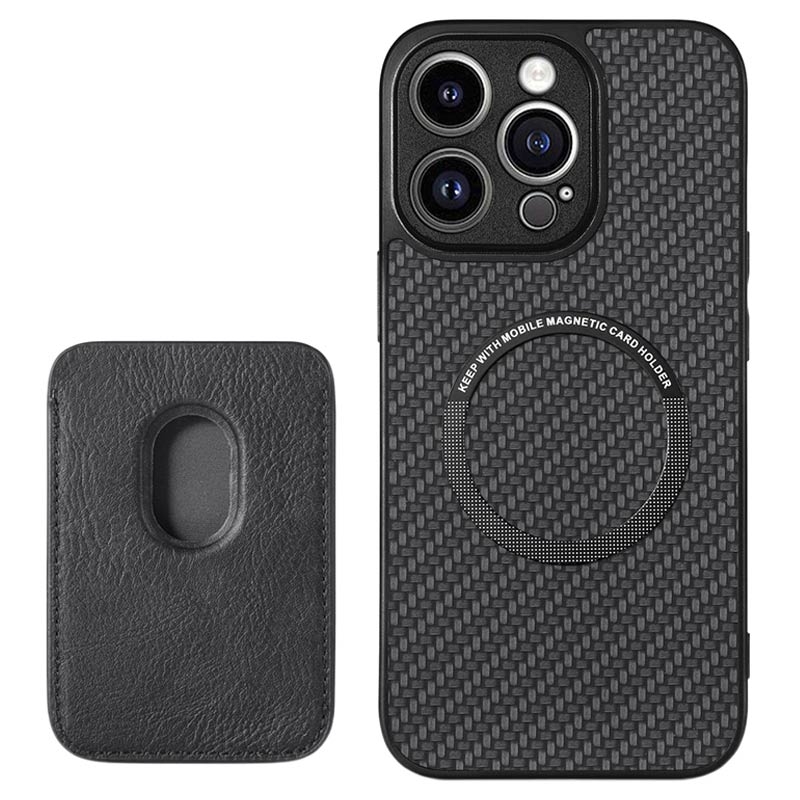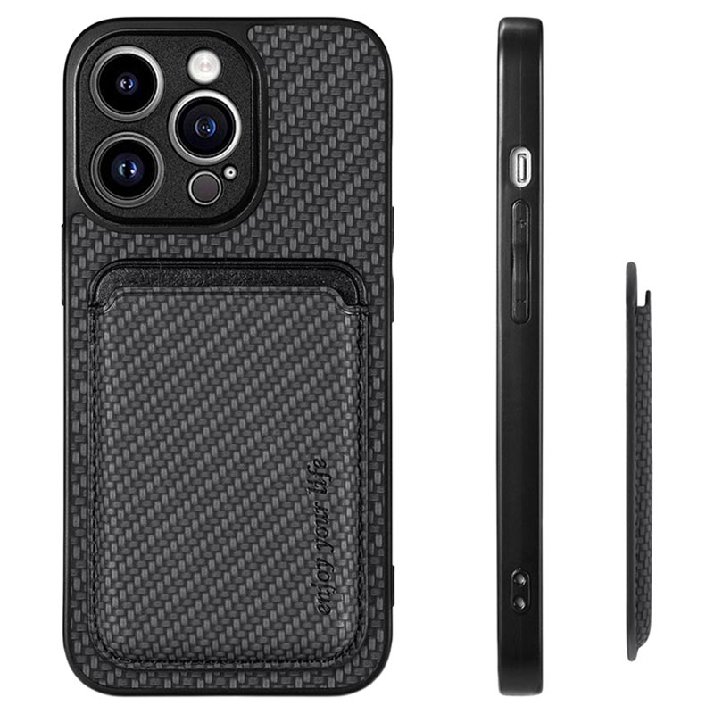 Magnetic Case with Card Holder for iPhone 15 Pro - Carbon Fiber