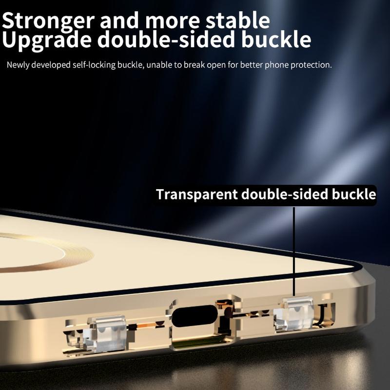 iPhone 15 Pro Max beschermhoes van dubbelzijdig HD gehard glas, compatibel met MagSafe - Goud