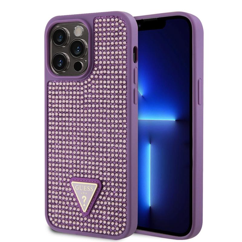 Guess Rhinestones Triangle Metal Logo Case for iPhone 15 Pro Max