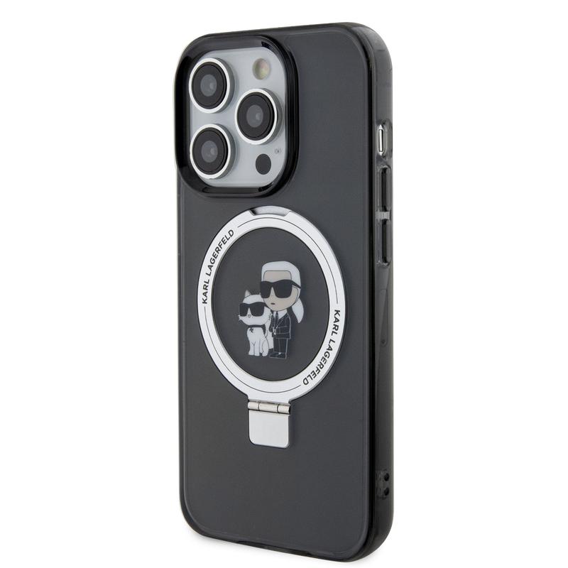 iPhone 15 Pro Max Karl Lagerfeld Ring Stand Karl & Choupette Mag Hoesje - Zwart