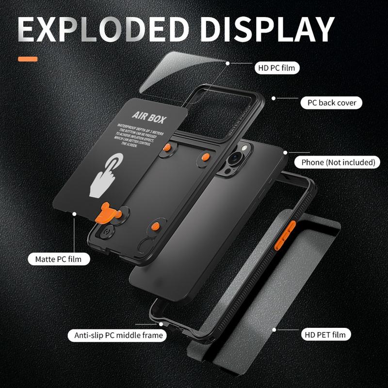 De telefoon moet worden geassembleerd zonder extra accessoires zoals schermbeschermers, decoraties of gehard glas op de behuizing van de telefoon (herinnering voor iPhone-installatie: lijn de mute-knop uit voor montage, het scherm van het product is krasbestendig en er is geen noodzaak voor schermbeschermers voor de behuizing, omdat het aanbrengen van schermbeschermers het waterdichte effect kan beïnvloeden).