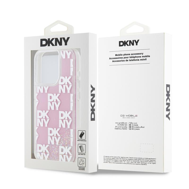 DKNY Liquid Glitter Checkered Pattern Hoesje voor iPhone 15 Pro