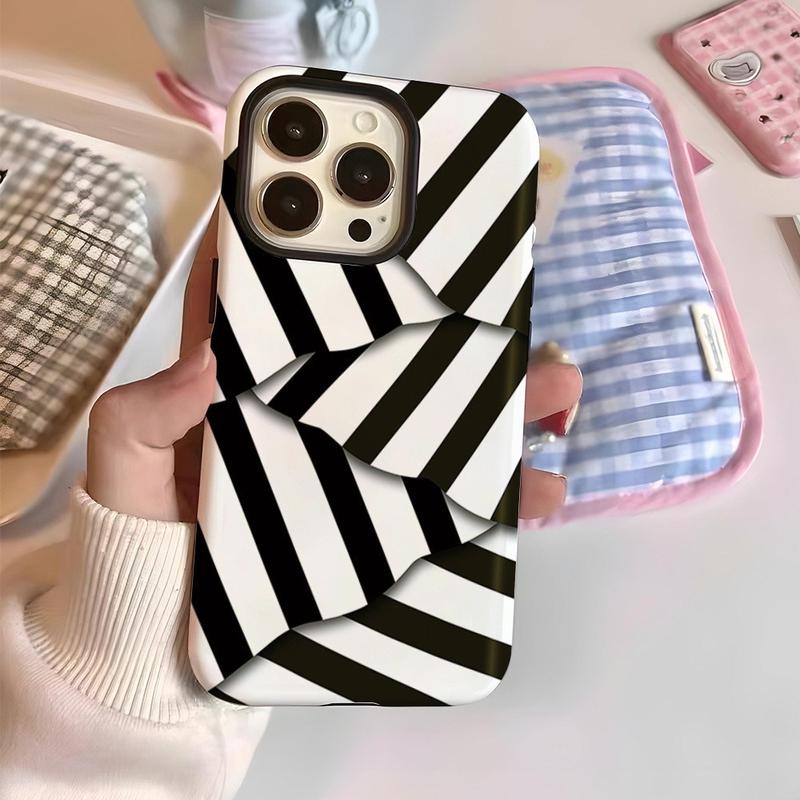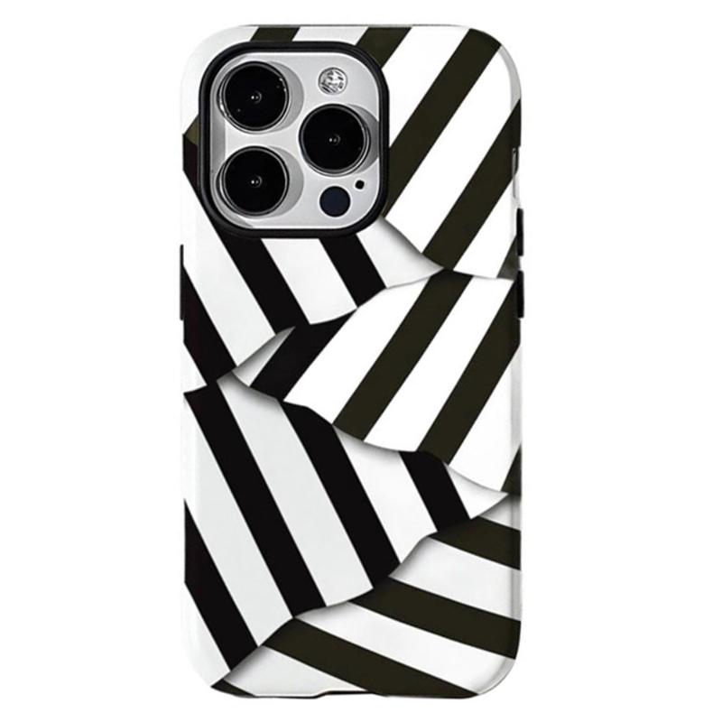 iPhone 15 Pro Stripes afneembare 2-in-1 hybride hoes - zwart / wit