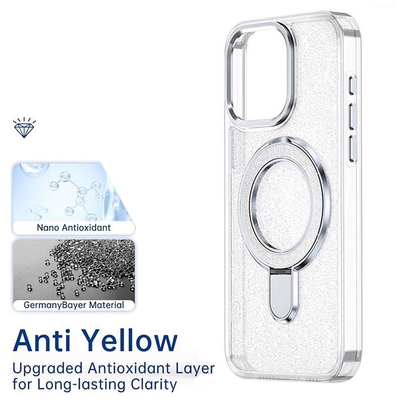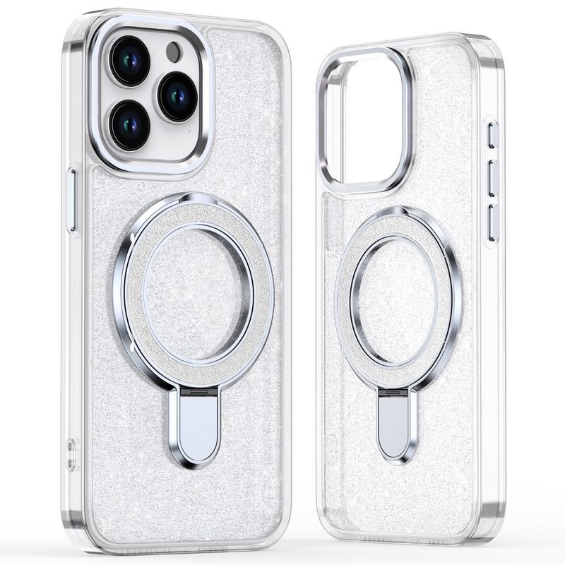 Breng stijl en bescherming samen met de iPhone 15 Pro Max glittercase, die elegante schittering combineert met betrouwbare duurzaamheid voor elke dag. Gemaakt van hoogwaardige materialen en uitgerust met een ingebouwde kickstand met metalen ring, houdt deze hoes je telefoon de hele dag veilig, functioneel en modieus.