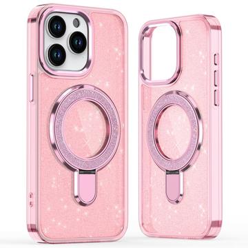 iPhone 15 Pro Glitter Hybride Hoesje met Kickstand - MagSafe Compatibel - Roze
