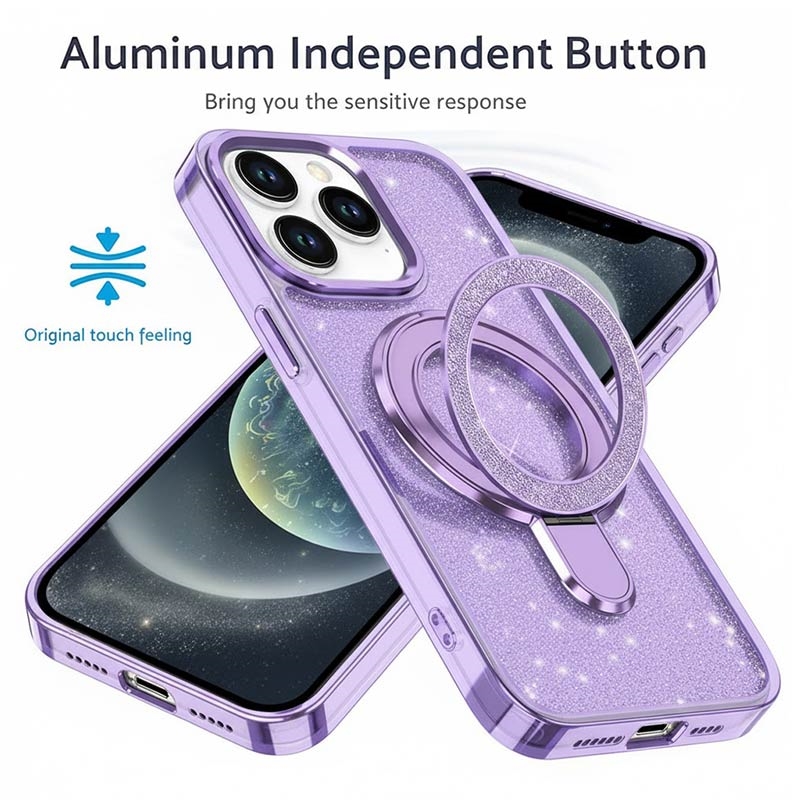 Breng stijl en bescherming samen met de iPhone 15 Pro glittercase, die elegante schittering combineert met betrouwbare duurzaamheid voor elke dag. Gemaakt van hoogwaardige materialen en uitgerust met een ingebouwde kickstand met metalen ring, houdt deze hoes je telefoon de hele dag veilig, functioneel en modieus.