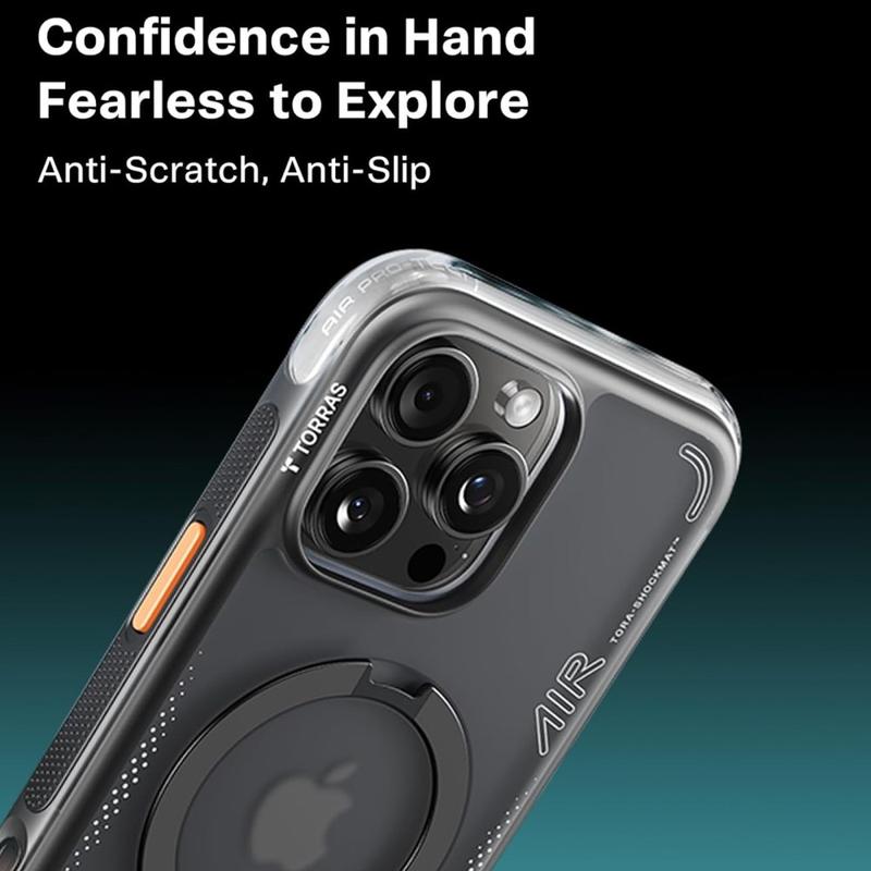 De Torras Ostand Q3 Air MagSafe Case voor iPhone 15 Pro combineert moderne esthetiek met geavanceerde bescherming. Hij is gemaakt van hoogwaardige TPU- en PC-materialen en biedt een slank, stijlvol profiel met een veilige en comfortabele grip.