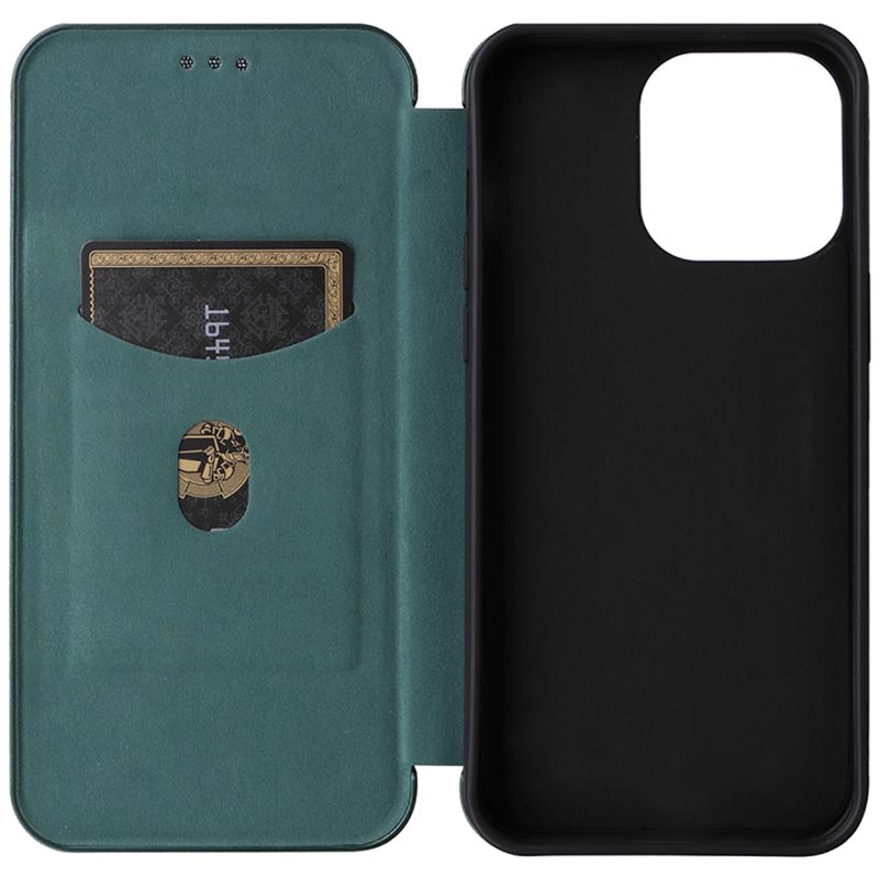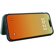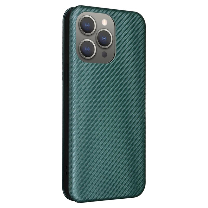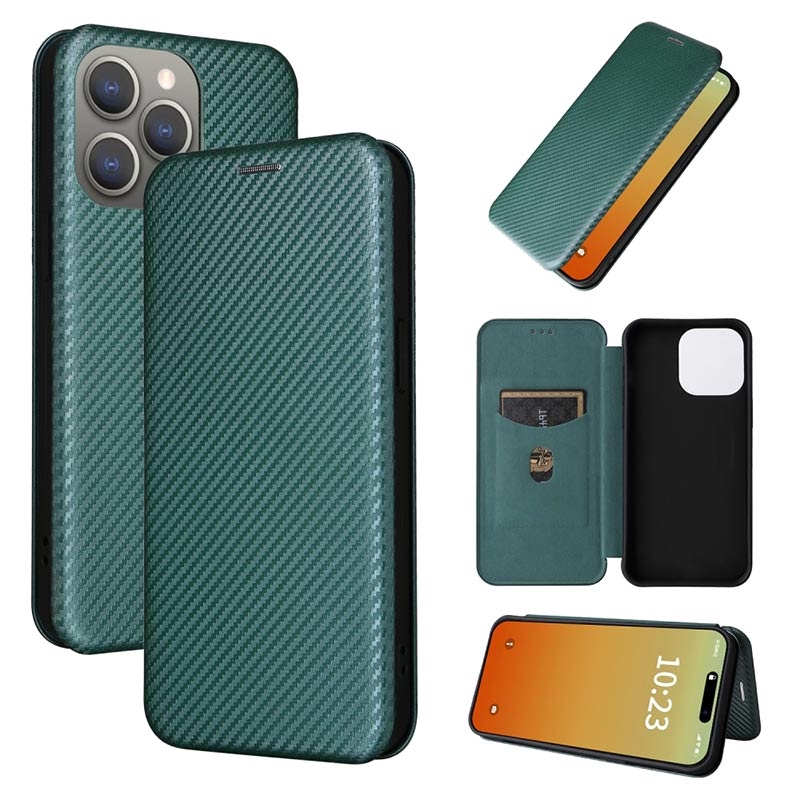 - Koolstofvezel getextureerde flip hoes voor iPhone 15 Pro
