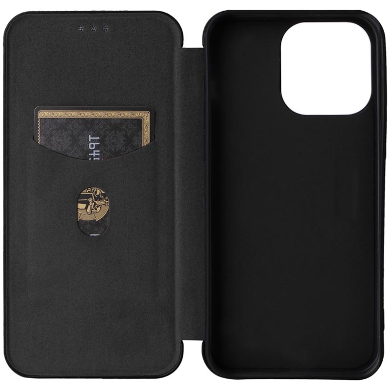 - Koolstofvezel getextureerde flip hoes voor iPhone 15 Pro