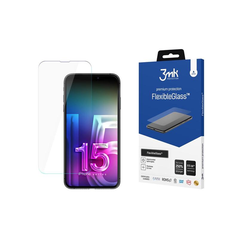 3MK FlexibleGlass Hybride Screenprotector voor iPhone 15 Pro Max - 7H, 0.3mm
