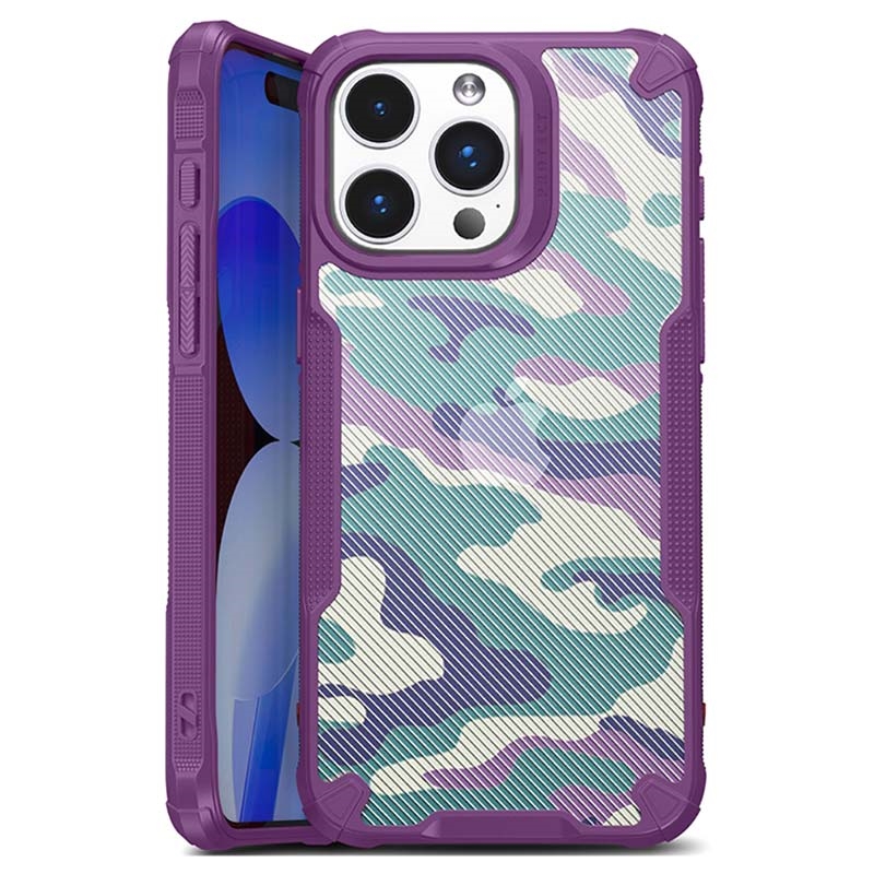 iPhone 15 Pro Max Anti-Shock Hybride Hoesje - Camouflage - Paars
