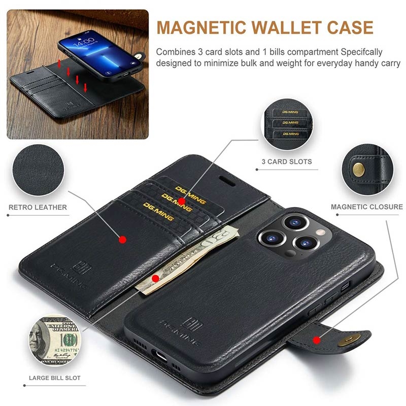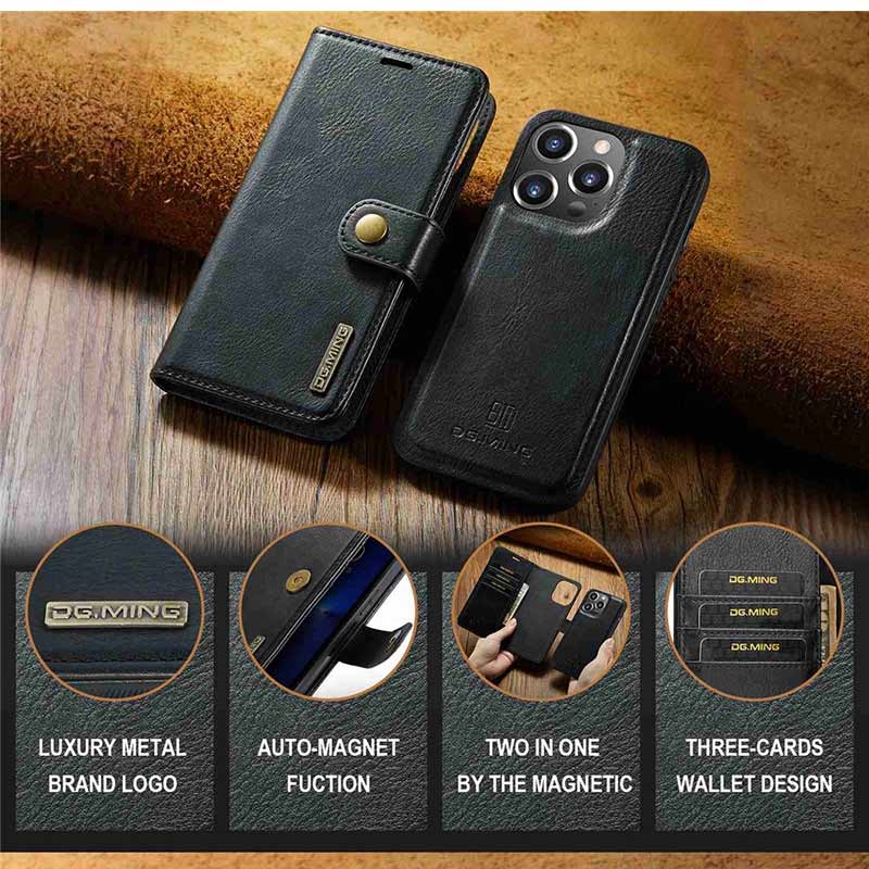 - DG.Ming portemonnee leren hoesje met een afneembare iPhone 15 Pro Max hoes