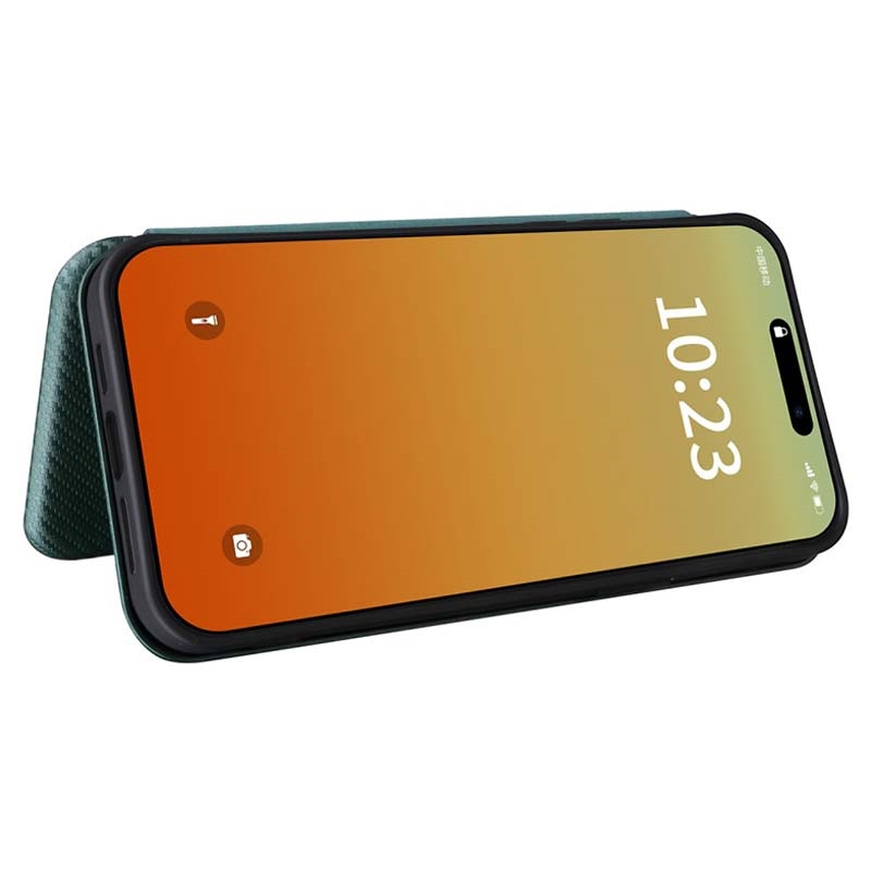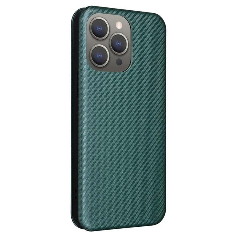 - Koolstofvezel getextureerde flip hoes voor iPhone 15 Pro Max