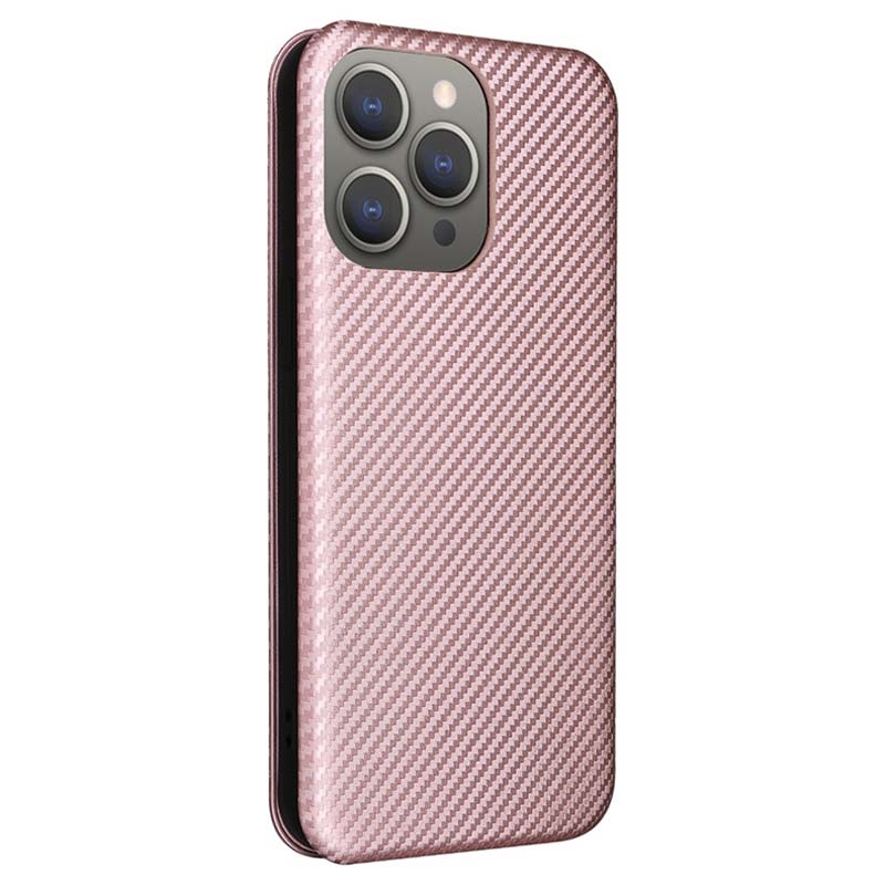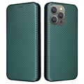- Koolstofvezel getextureerde flip hoes voor iPhone 15 Pro Max