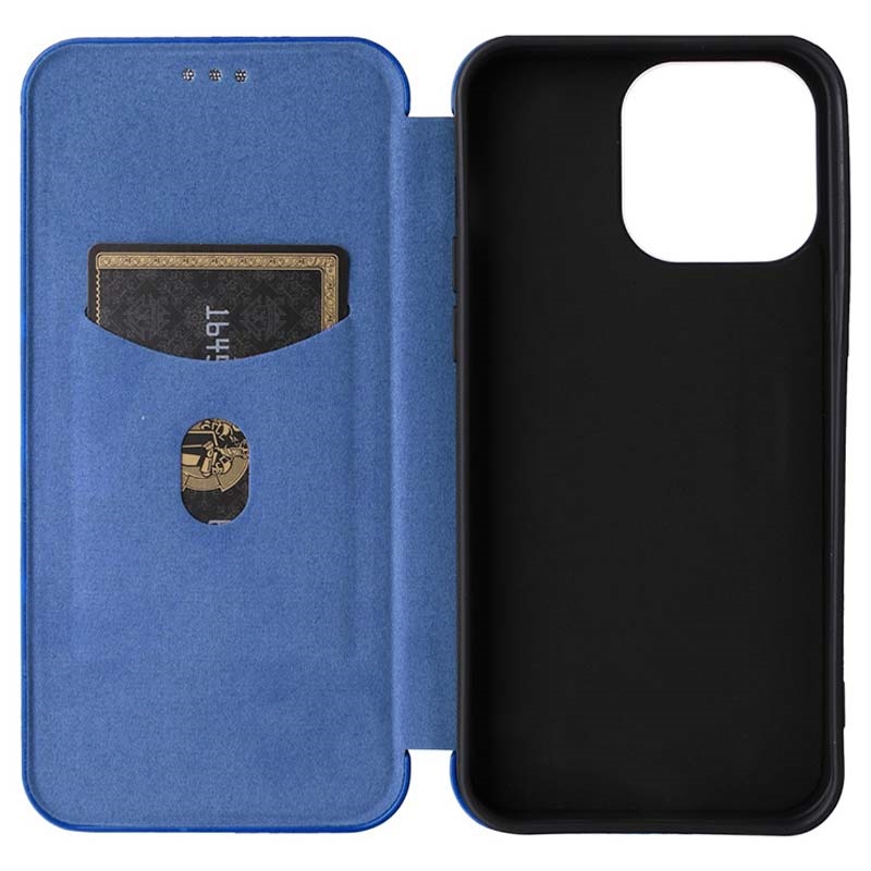 - Koolstofvezel getextureerde flip hoes voor iPhone 15 Pro Max