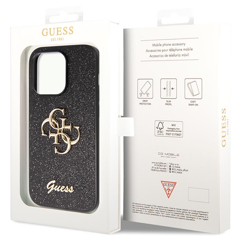 - Spectacular Guess Fixed Glitter 4G Metal Logo cover for iPhone 15 Pro Max