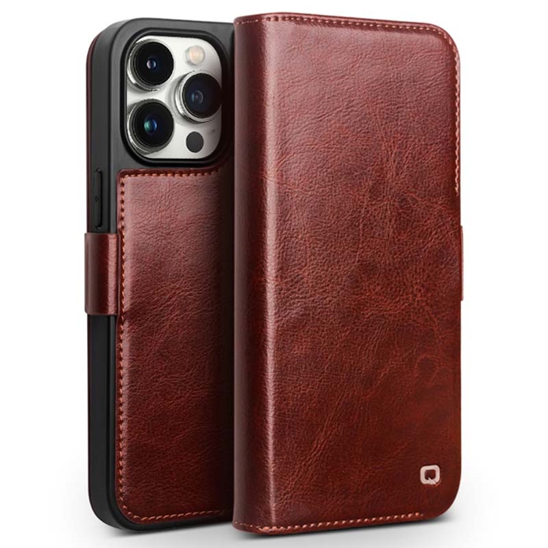Qialino Classic Wallet Leren Hoesje voor iPhone 15 Pro Max