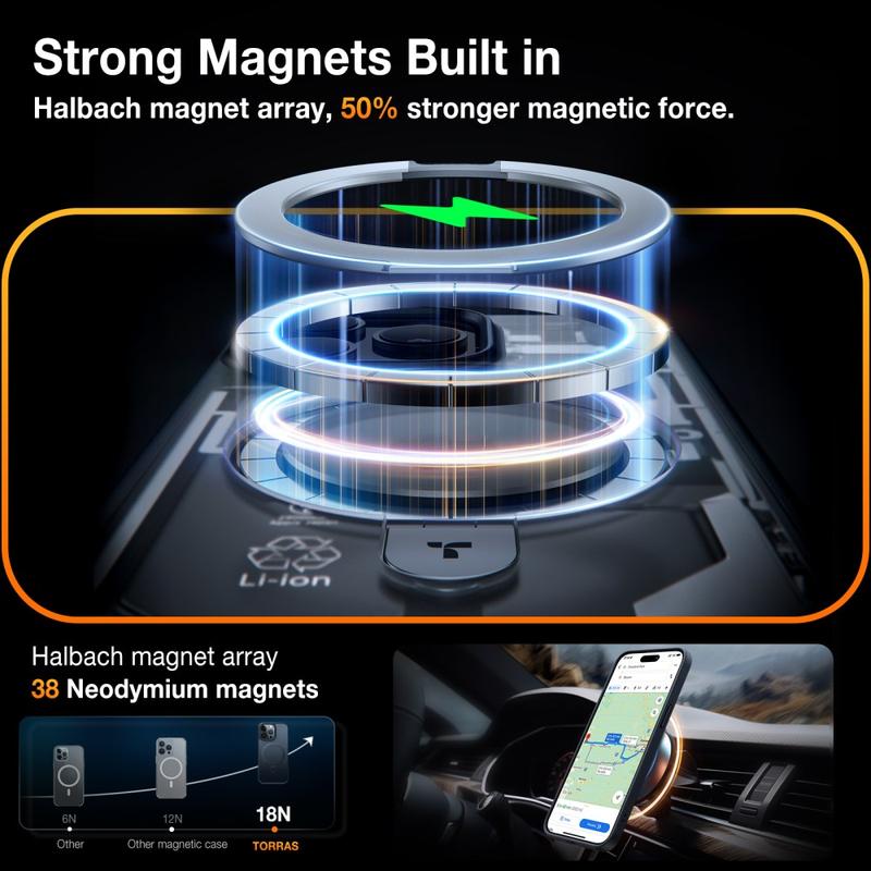 De meeste slanke cases dwingen je om twee van de drie te kiezen: magneetsterkte, gemak van de standaard of serieuze valbestendigheid. TORRAS geeft je alle drie in een strak pakket dat net zo verfijnd aanvoelt als de telefoon die het beschermt.