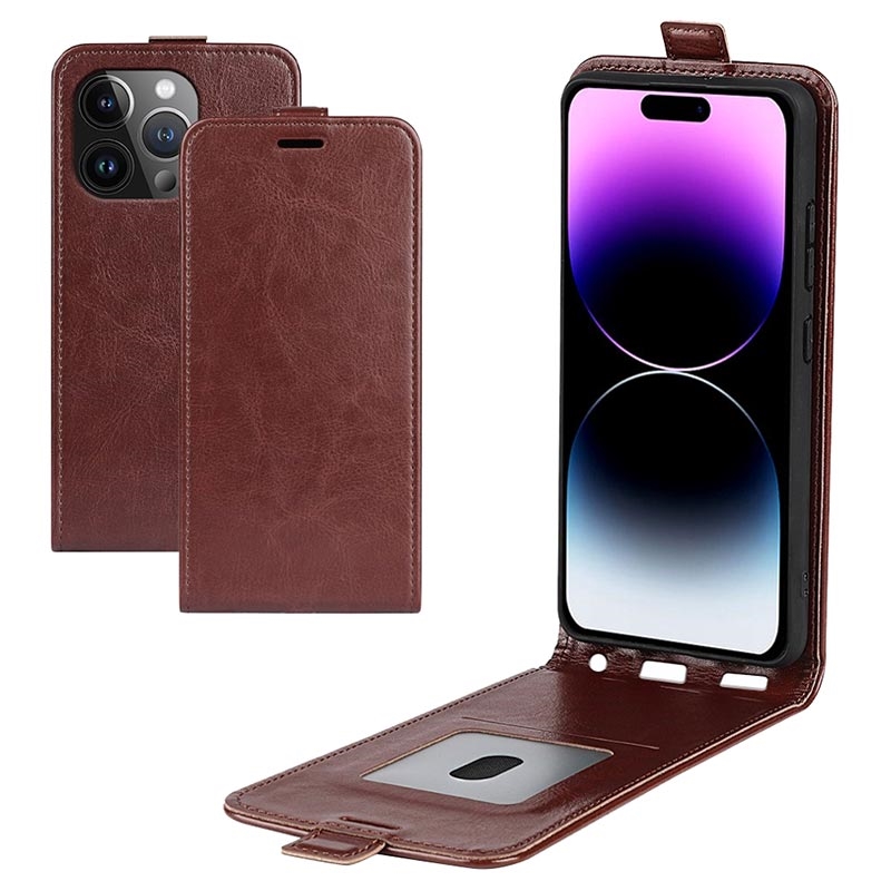 iPhone 15 Pro Max Verticale Flip Hoesje met Kaartsleuf - Bruin