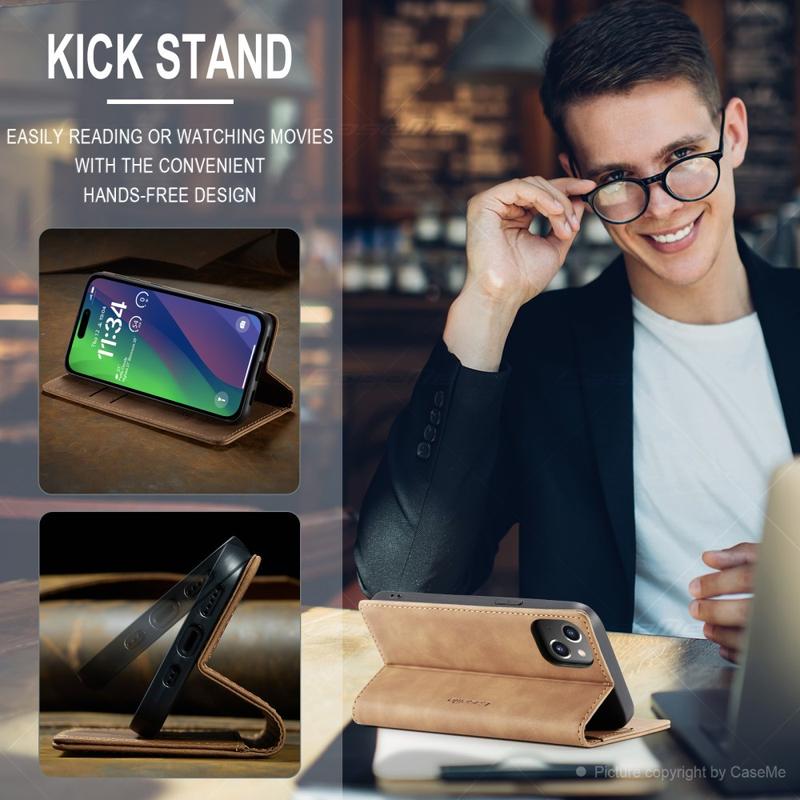 - Ingebouwde magneten houden de Caseme 013-serie portemonnee-etui gesloten