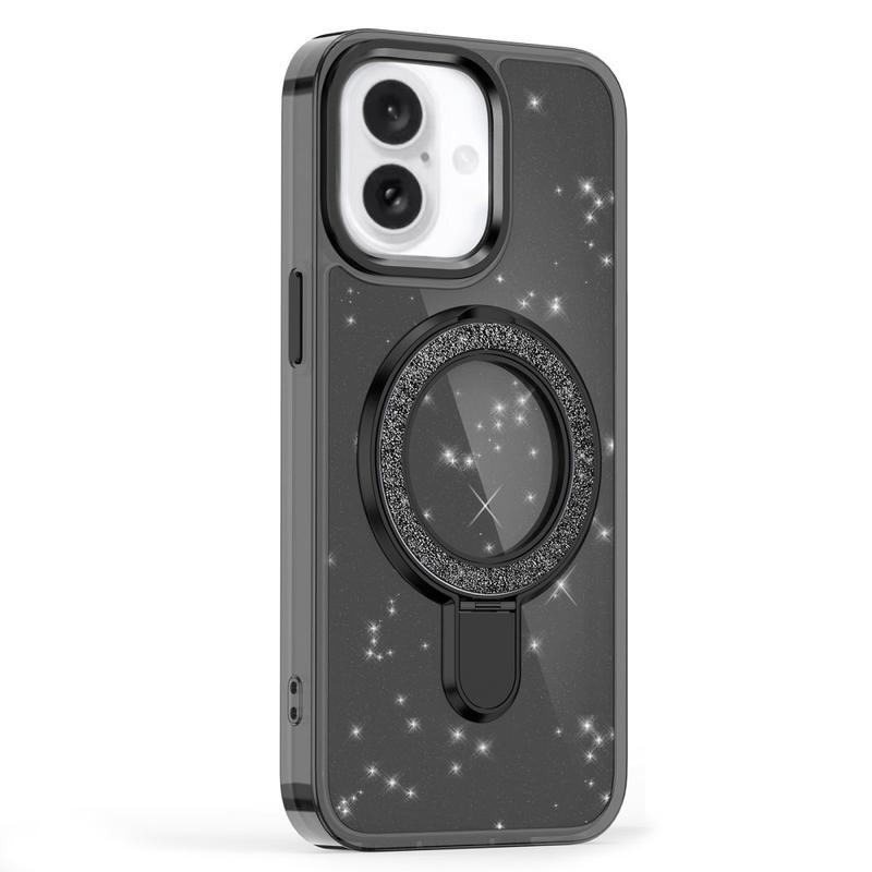 Glitter Hoesje met kickstand voor iPhone 16 - MagSafe compatibel TPU + PC hybride kickstand cover