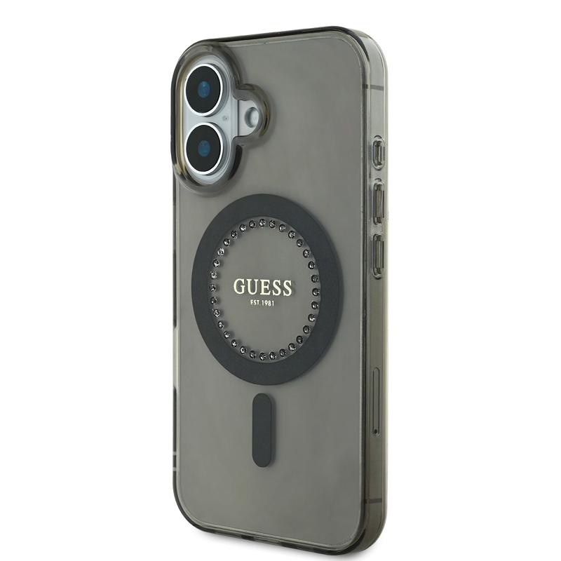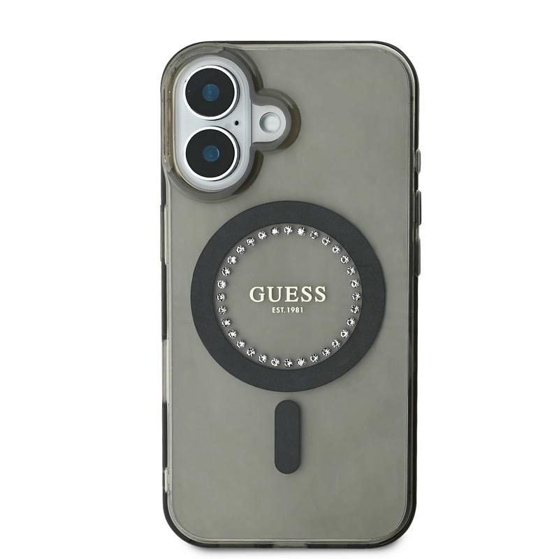 Guess IML Rhinestones Ring Hoesje voor iPhone 16 - MagSafe-compatibel