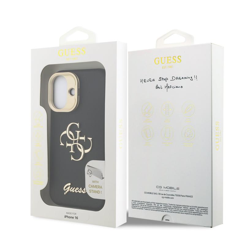 • Guess 4G Logo Stand Camera Frame Hoesje voor iPhone 16 - Designerstijl met handsfree gemak