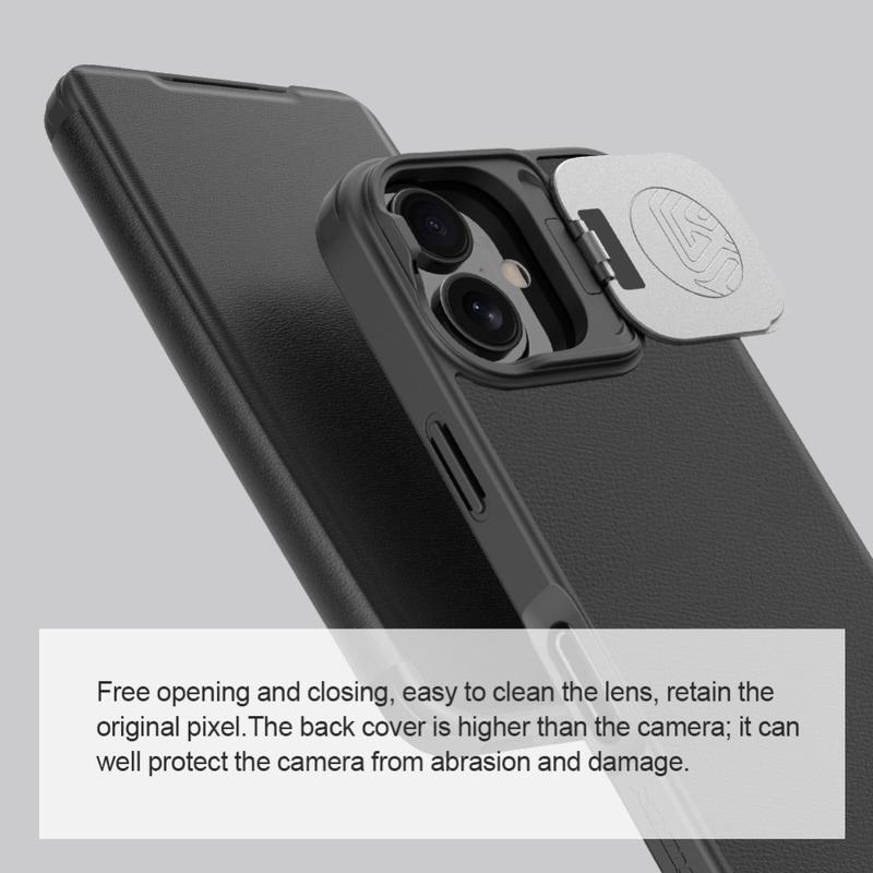Nillkin Qin Prop Flip Hoesje voor iPhone 16 - met bescherming voor de cameralens