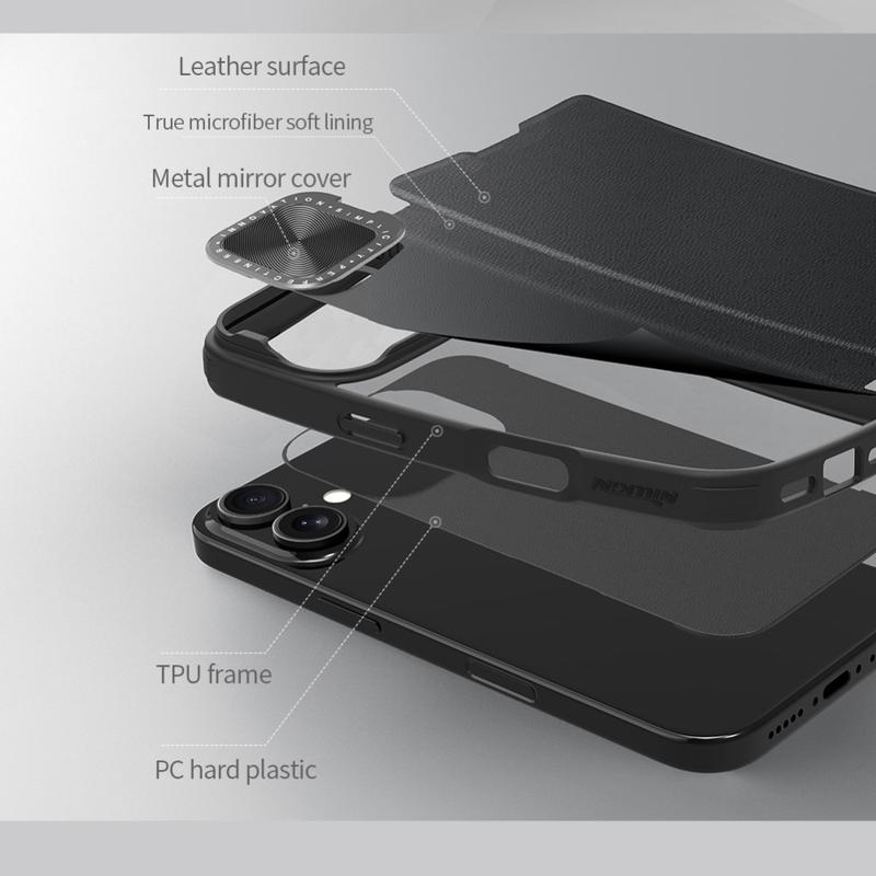 • Nillkin Qin Prop Flip Hoesje voor iPhone 16 - met bescherming voor de cameralens