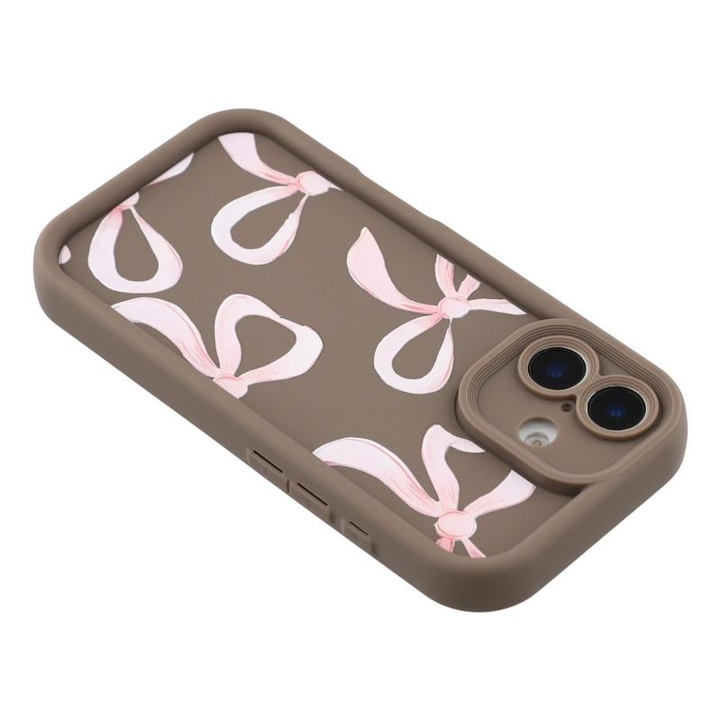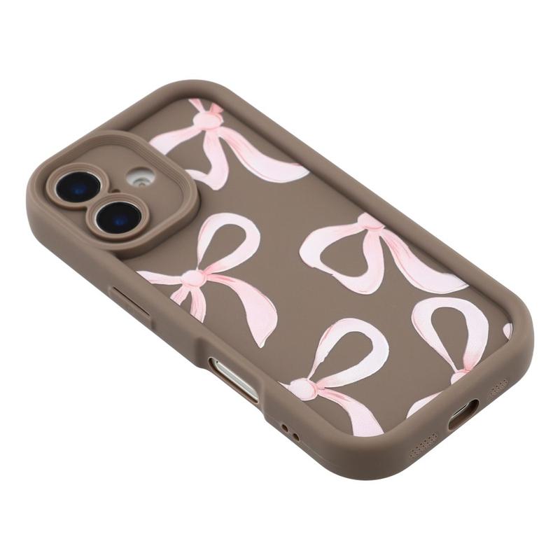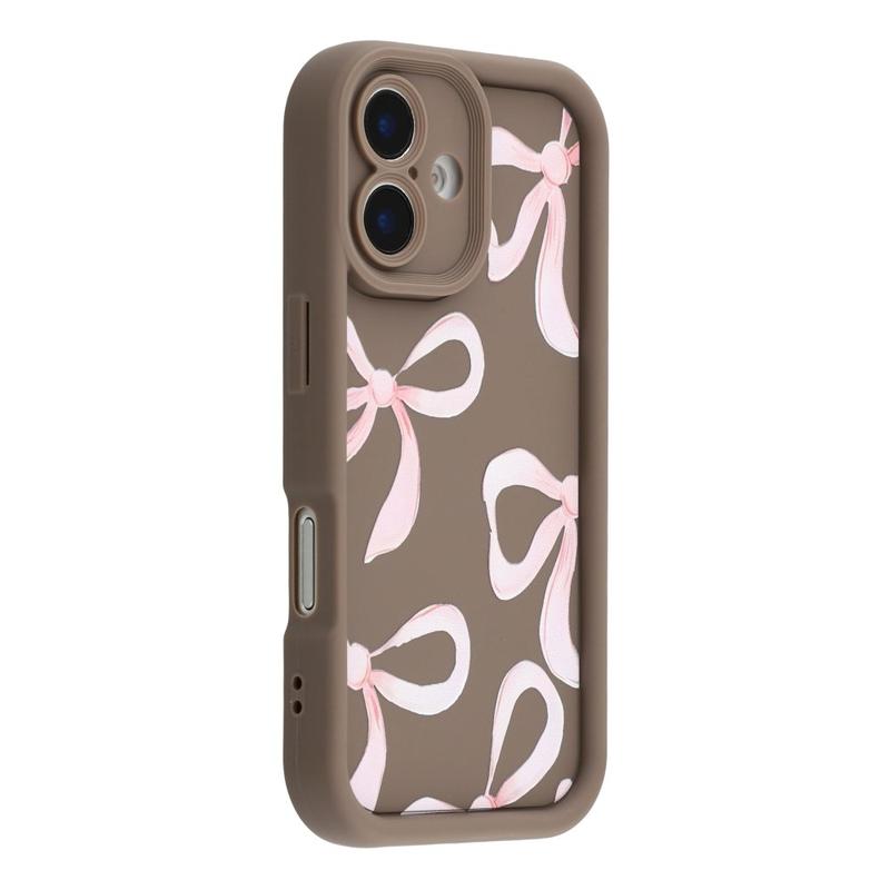 iPhone 16 Plus Stijlvol Schokbestendig TPU Hoesje met Opstaande Randen - Bruin / Grote strik