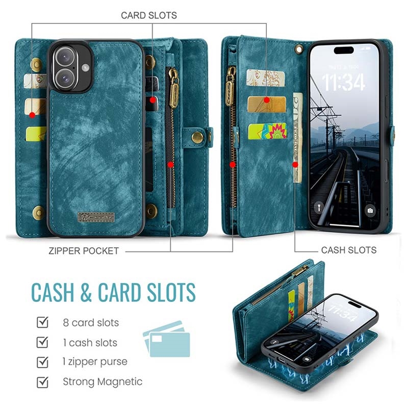 • Caseme 008 2-in-1 multifunctionele portemonneehoes voor iPhone 16 Plus