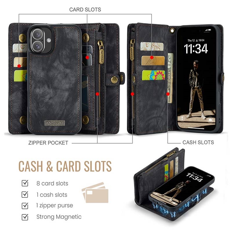 Maak je dag superefficiënt met de Caseme 008 2-in-1 iPhone 16 Plus portemonneehoes.